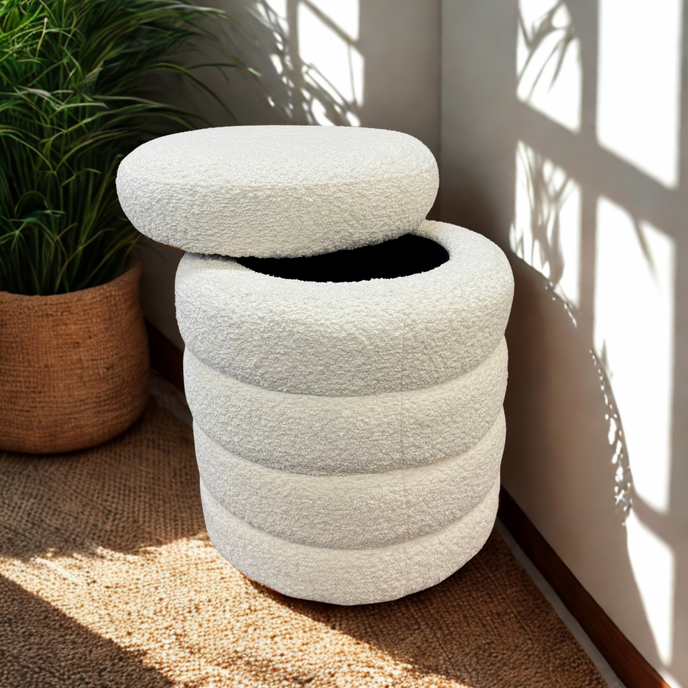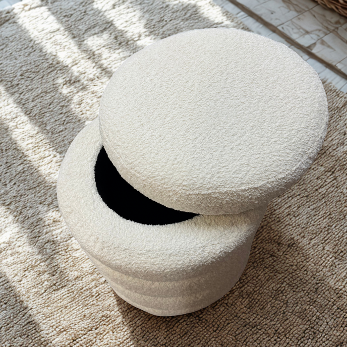Ollie Boucle Storage Ottoman- Round